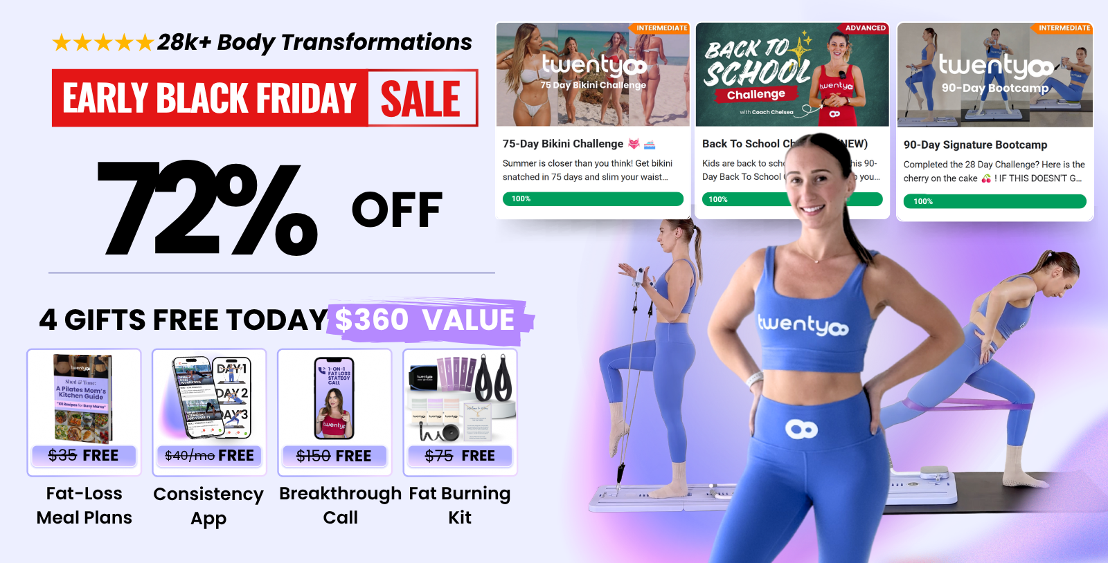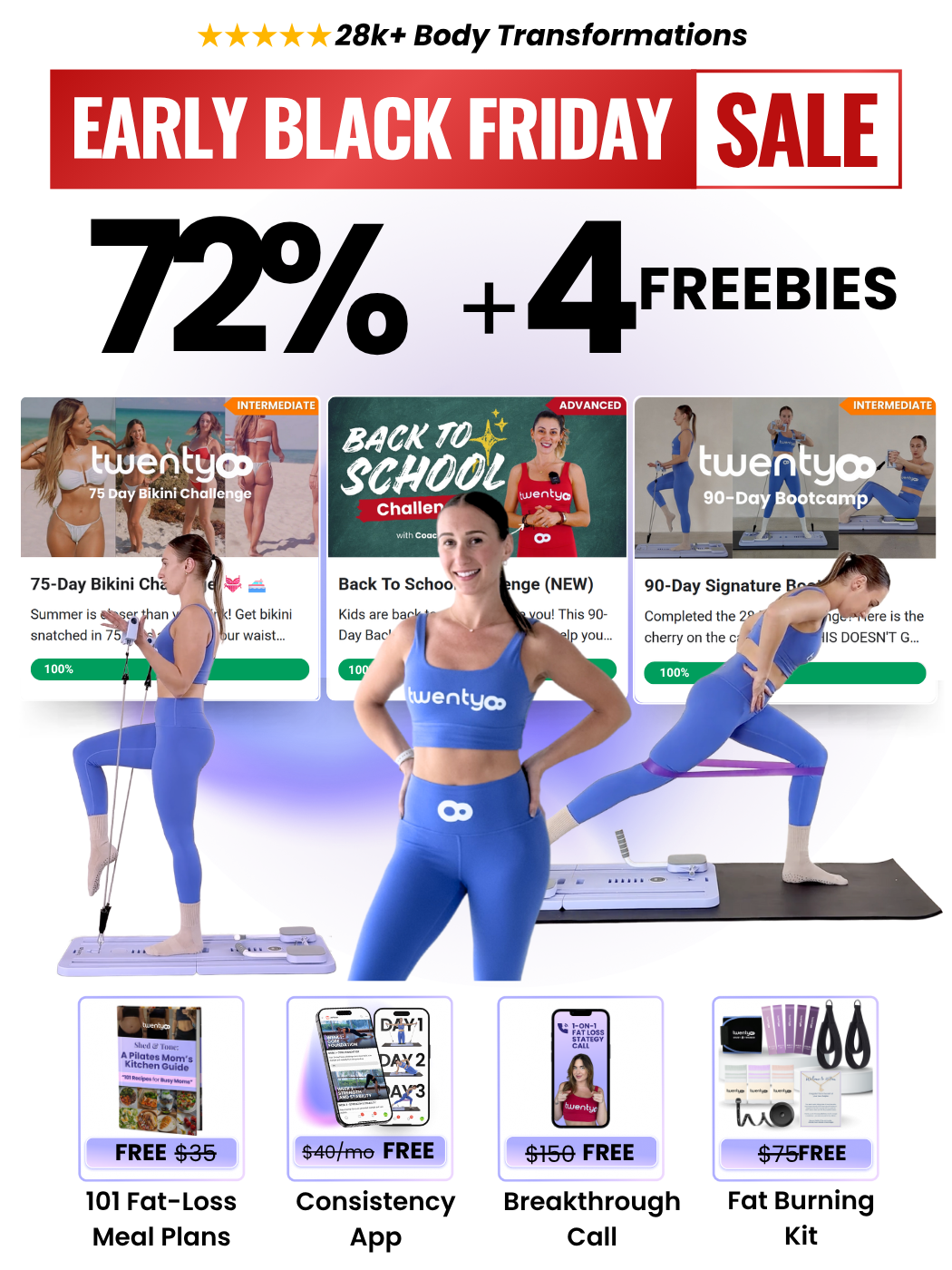 Designed by certified instructors, our 90-Day Challenge consists of 15-20 minutes workouts that focus on tightening your arms, glutes and core while improving your strength and flexibility.