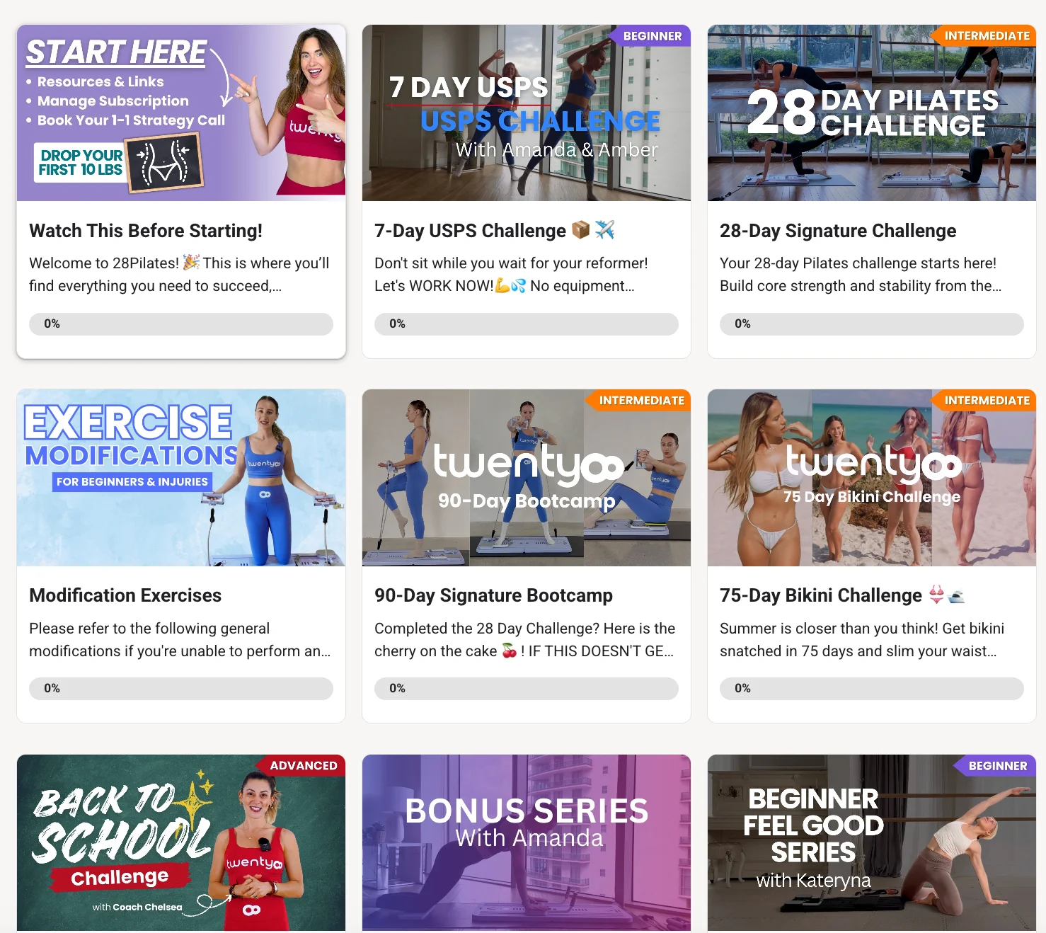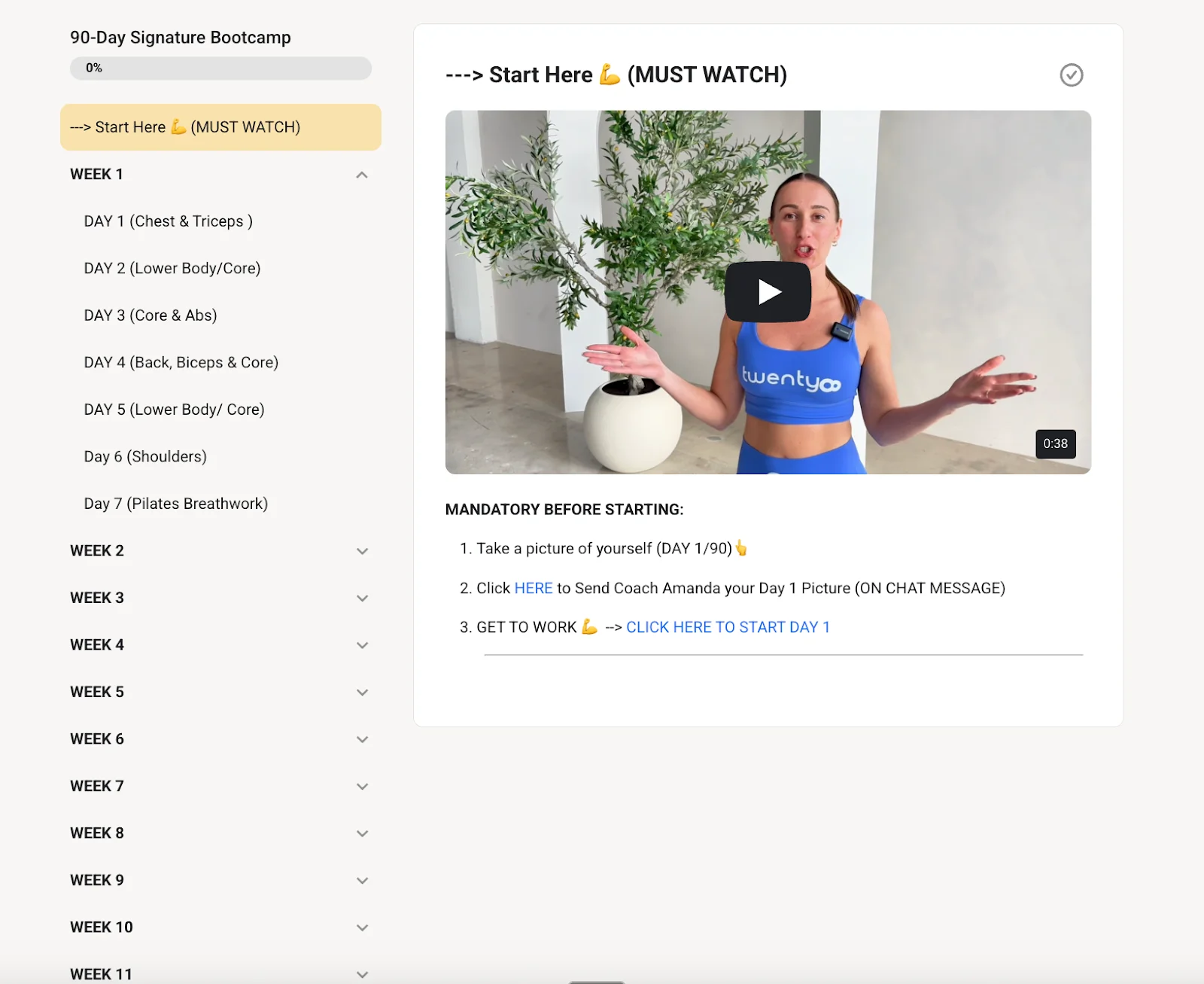 Opened the Twenty8 app. Selected "90-Day Bootcamp, Day 1."