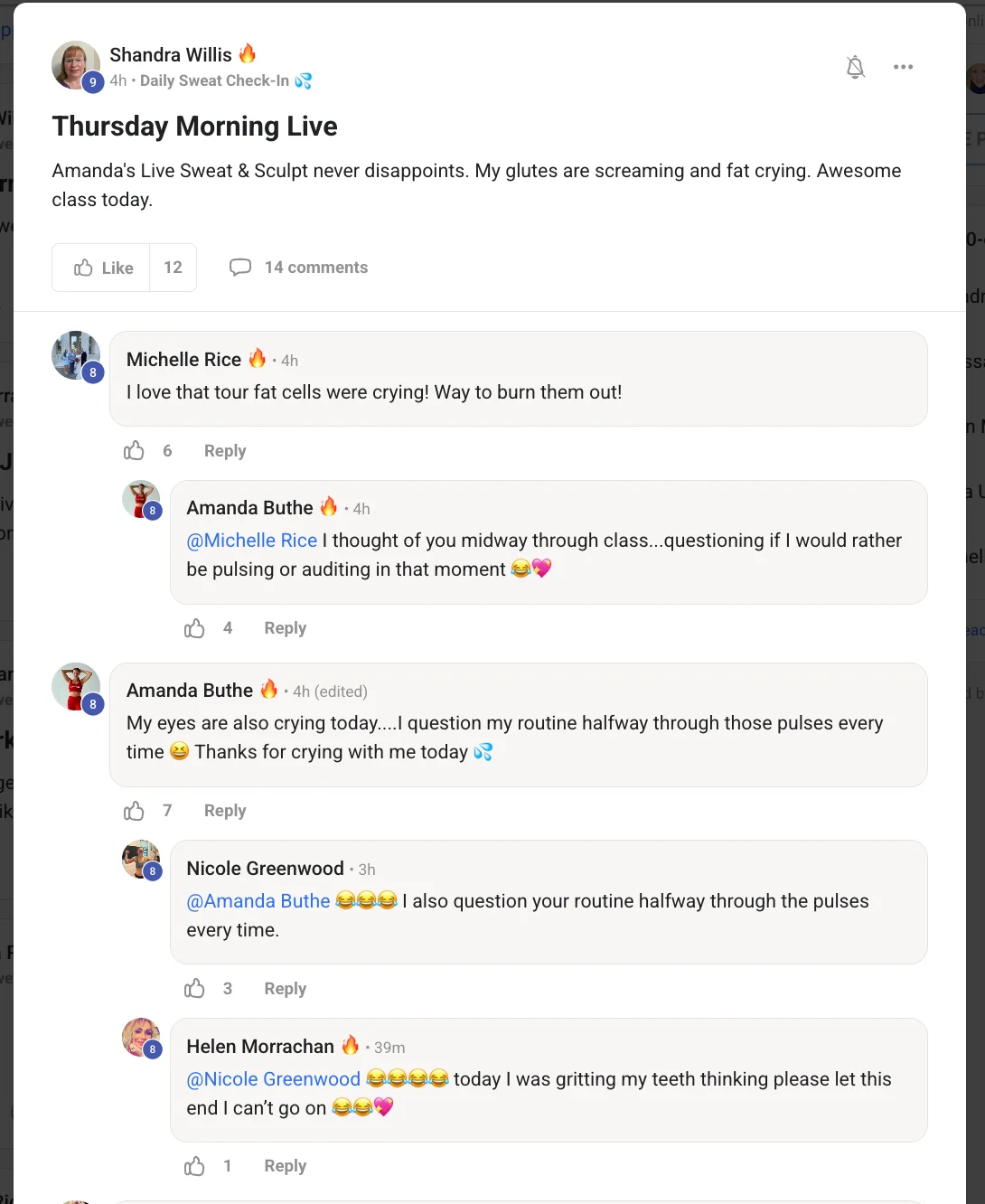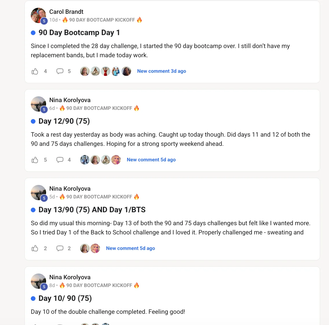 "Amazing progress! Keep going!" "This is inspiring me to keep showing up." "You're proof this works."