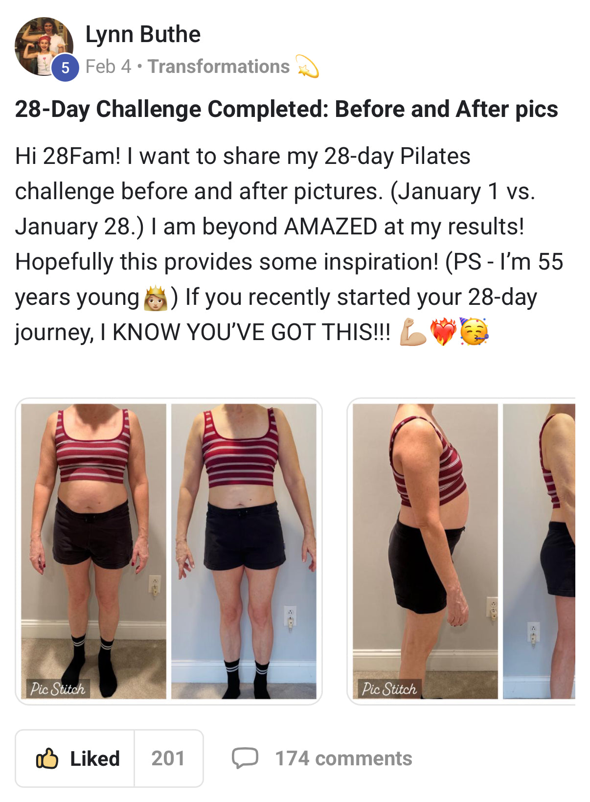 I have tried everything over the years to stay healthy but never stuck with any of them. 28Pilates is different. I worked at this program but it wasn’t “work” because it is so much fun. I have become stronger and have so much more energy to keep up with our grandkids! I can see myself continuing to become a healthier version of myself!!