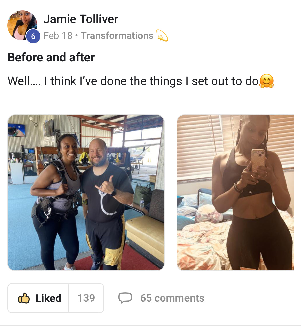 I started with the 28-Day Challenge in May and now I’m 19 days into the 90-Day Bootcamp. I feel stronger, more toned, and I can actually see the difference in my body. At 46 years old, I’m proud of myself — and living proof it’s never too late to change.