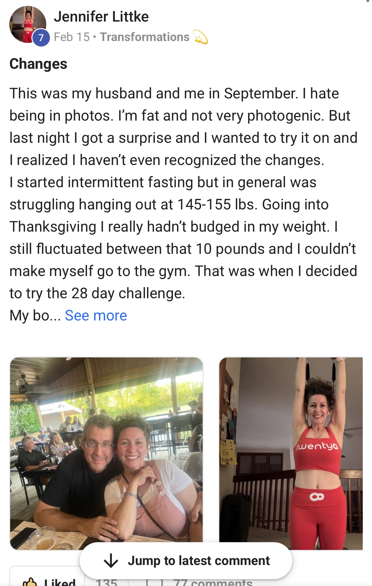 At 52 and going through menopause, I’ve lost 5 inches and 6 pounds in the first 28 days but honestly, the biggest win is how I feel. This program helped me push through so much self-doubt and finally feel like myself again. The support from the 28 community means everything. I didn’t quit on myself… and I’m just getting started.