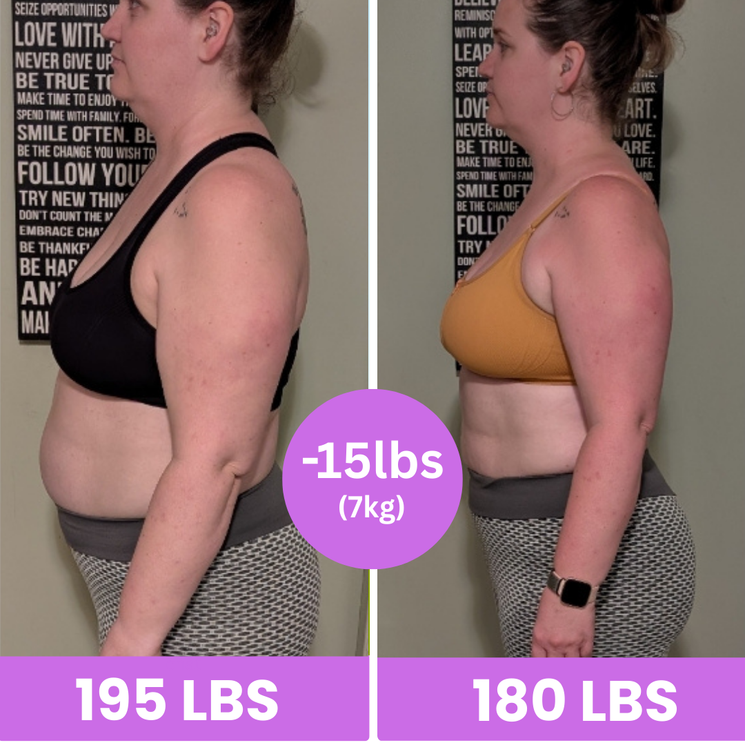 I started at 195 lbs and now I’m down to 180! That’s 15 pounds gone and I feel lighter, stronger, and more confident in my body. This was just the beginning, and I’m so proud of what I’ve already achieved.