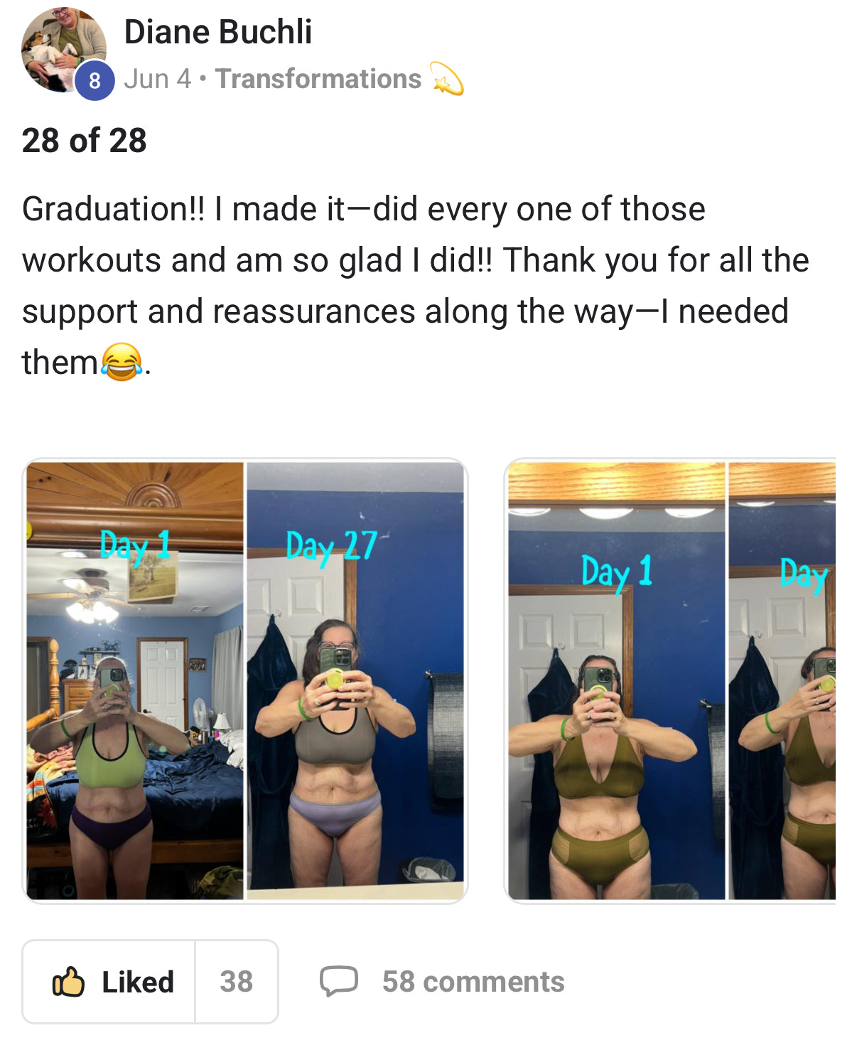 I started with the 28-Day Challenge in May and now I’m 19 days into the 90-Day Bootcamp. I feel stronger, more toned, and I can actually see the difference in my body. At 46 years old, I’m proud of myself — and living proof it’s never too late to change.